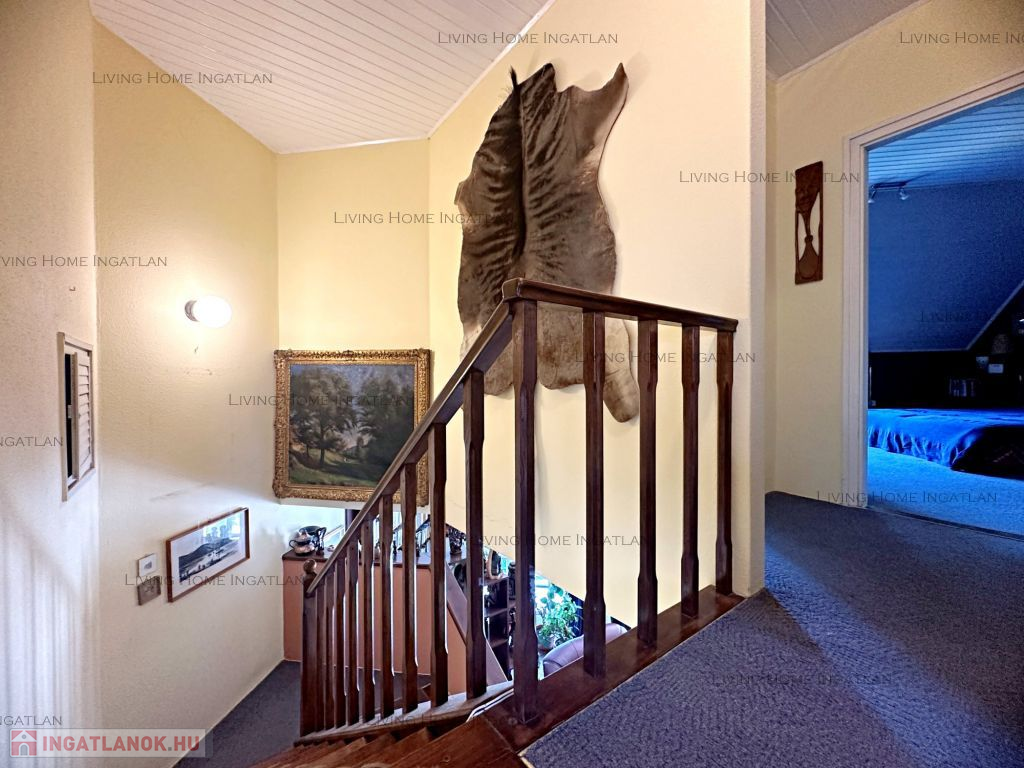 Emelet: három hálószoba, kádas fürdő, beépített gardrób.