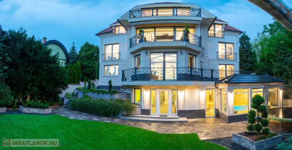 Budapest, II. in one of the most popular parts of the district, on the southern hillside, in a low-traffic, calm, quiet, family-run area, next to elegant buildings, in an exclusive area popular with embassies, far from city noise and polluted air, close to nature reserves, but only 3 km away from the city center, with excellent transport links, for sale is a 550 sqm American-style, representative-looking, classic-looking, 4-storey, premium category, luxury villa with lots of extras, eternal panorama.