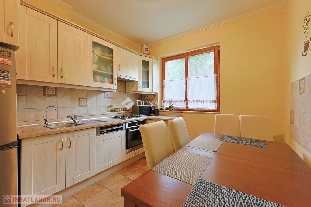 Eladó a 2/A kerületben csendes, nyugodt utcában egy 162 nm-es sorházi lakás.A telek 1004 nm, amin két lakás van, osztatlan közös tulajdon, ügyvédi használati megosztó szerződéssel.Előkert, hátsókert 220 nm, gyümölcsfákkal, teljesen elkerítve a szomszédtól.A ház alatt garázs, kazánház, mosókonyha zuhannyal, közlekedővel.A földszinten nyitott terasz, nappali, hálószoba, előszoba, konyha étkezővel, fürdőszoba WC-vel.A tetőtérben fürdőszoba WC-vel, s három külön nyíló szoba van.Műszaki jellemzők :A fűtés FÉG gázkazánnal történik, a földszinten padlófűtés, az emeleten radiátorok vannak. A melegvizet 300 literes Concept villanybojler biztosítja.A konyhában Teka páraelszívó, Whirpool 12 terítékes mosogatógép, Electrolux sütő, Gorenje gázfőzőlap biztosítja a kényelmes főzést.Az otthon külső kamerával felszerelt, riasztó, kaputelefon is van.Napkollektor csatlakozás ki van építve,Az egészséges ivóvizet beépített vízszűrő berendezés biztosítja.A házat 1990-ben építették, 2014- ben felújították.A felújítás során kicserélték a víz- és villanyvezetékeket, ajtókat ( lucfenyő ), ablakokat melyek szintén borovi fenyőből készült, kétrétegű szigeteléssel.A burkolatokat is kicserélték, felújították a padlófűtést, a ház kapott 15 cm-es kőzetgyapot szigetelést, a padláson pedig 20 cm-es ökológiai habosított papír szigetelést.A hely:Kiváló közlekedés, 10 perc sétára van a 164, 64, 257, 57 buszmegálló ,.Iskolák, rendelők, gyógyszertár, bevásárlóközpont a közelben.