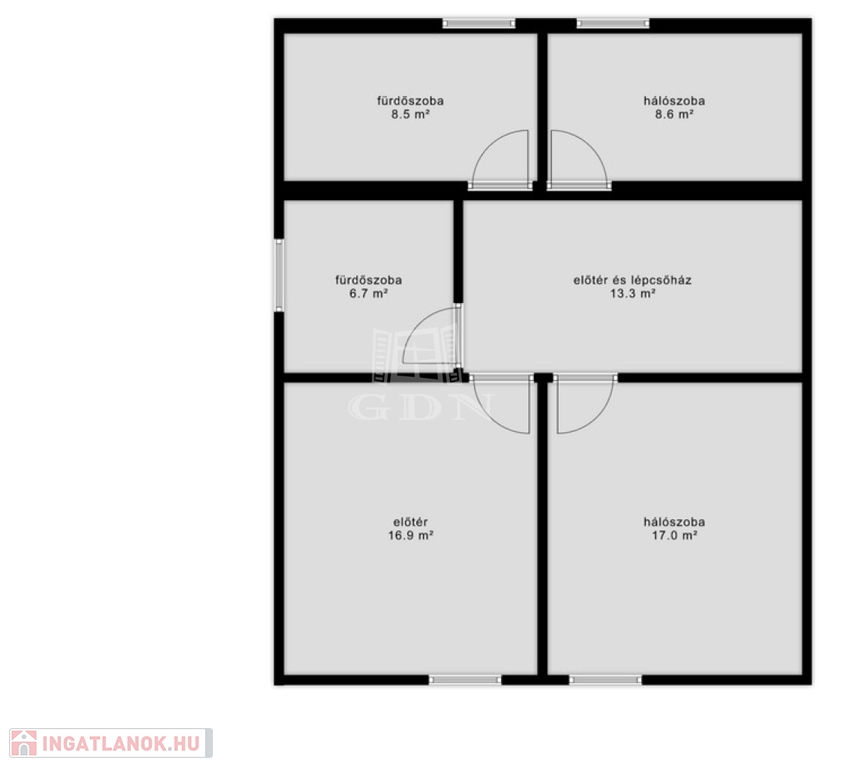 • Tetőtér: három szoba, kettő fürdőszoba (kád, zuhanyzó, bide)