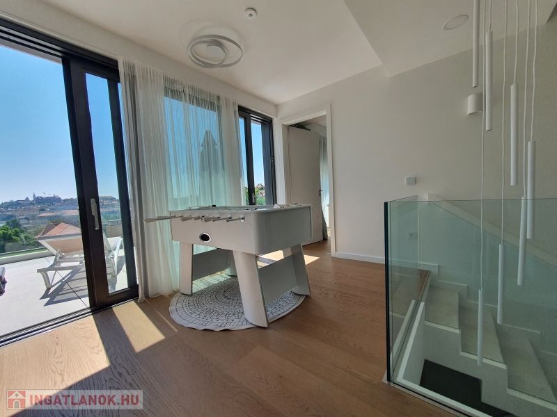 A 600 m2, 3-apartment, panoramic, minimal design luxury villa with elevator, built in 2021 is for sale at 2nd district Rézmál on a 1,005 m2 lot, accessible from two streets, with sophisticated interior design solutions, a 4-space garage.