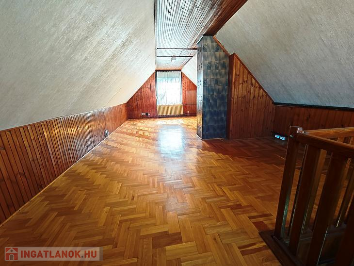 A tetőtér bruttó 50nm, nettó 26nm. Ez a szint jelenleg egylégterű, így tovább alakítható, hiszen már a víz-csatorna is kiépítésre került.