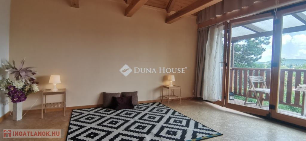 A felső szinten ezen kívül egy kisebb szoba, gyerekszoba található, melllette zuhanyzós fürdőszoba wc-vel és a hálószoba a teljes faltól-falig tartó diófa terasszal! Erről a fedett teraszról is lenyűgöző, örökpanorámás kilátás nyílik a budai hegyekre, amelyet a teljes szélességében eltolható nyílászárókkal élvezhetünk maximálisan.