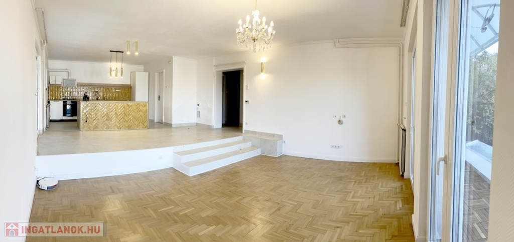 Egy teljeskörűen felújított 180 négyzetméteres, számított alapterületű, nappali+3 hálószobás elrendezésű, ikerház felet kínálunk eladásra. A házrész átgondolt elrendezésű, számos tároló helyiséggel ellátott, garázsában egy autó számára kialakított hellyel. A felújítás során az épület szigetelést kapott a nyílászárók kicserélésre kerültek, a konyha és a fürdőszoba is teljesen megújult.