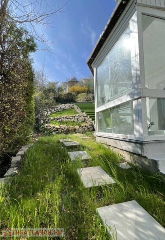 Az épület alsó szintjén helyezkedik el a tágas 50 négyzetméteres közös élettér, a konyha, az étkező, egy fürdőszoba és a nappali, melyhez panorámás erkély és egy kis kertkapcsolatos télikert kapcsolódik. Az emeleti szinten 3 hálószobát és 1 fürdőszobát találunk, ezek közül két szobának panorámás erkélye a harmadiknak pedig hangulatos kertkapcsolatos terasza van a hátsó kert felé. Az ingatlanhoz tartozó telekrész jól kihasználható, de mérete miatt könnyen rendben tartható.