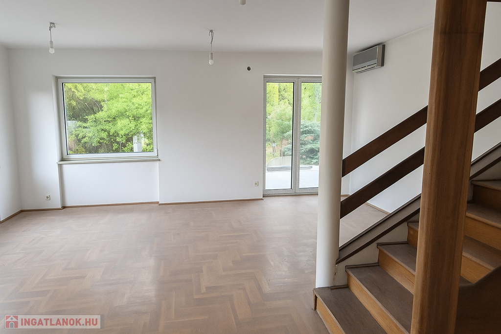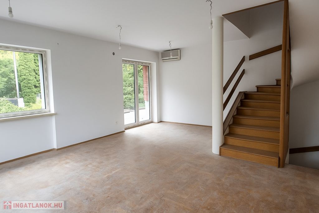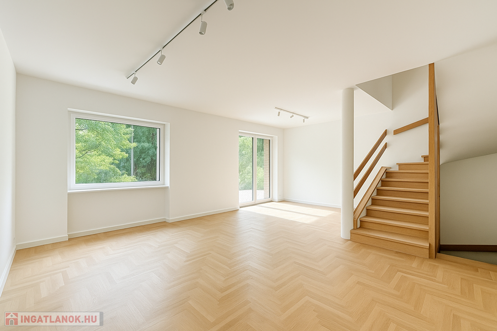 •Földszint: 35 nm nappali + 18 nm terasz, 17 nm konyha + étkező kertkapcsolattal, WC, kamra