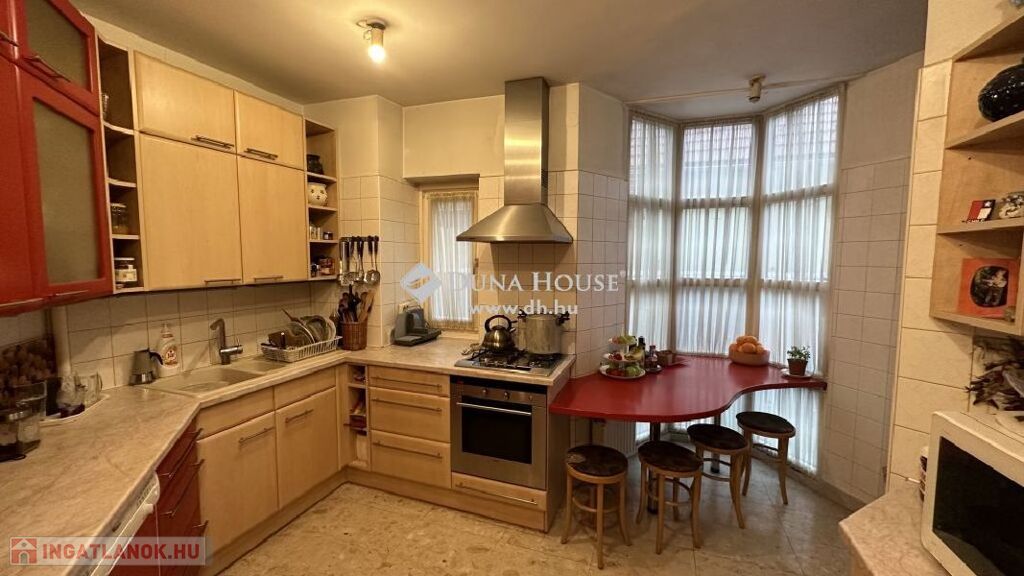 A II. kerületben Pesthidegkúton eladó egy 586 m2-es telken álló 286 m2 -es, 4 szintes,8 szobás, 3 fürdőszobás, nagy teraszos, 2 erkélyes, jó állapotú családi ház. Kiváló lehetőség nagyobb családok számára, több generáció együttélésére számára.A szintek mondhatni külön életterek, kis apartmanként funkcionálnak.Minden szoba külön nyíló!ÉPÜLET ÉS A TELEK JELLEMZŐI:A telek belterületi, szabályos négyszög alakú, felszíne sík, utcafrontja északi.Teljesen körbekerített, füvesített.Az ingatlan összközműves, minden közmű saját mérőórával rendelkezik.A ház az utcafronttól beljebb helyezkedik el.A ház 1997-ben épült, hagyományos építési technológiával.Alapozás: beton sávalapFüggőleges teherhordó szerkezet: tégla falazó elemVízszintes teherhordó szerkezet: monolit vasbeton födémTetőszerkezet: faszerkezetű, kontyolt nyeregtetőTetőfedés: beton Bramac cserépfedésKülső falfelület: dörzsölt vakolatBelső padlóburkolat: kerámia és parkettaFűtés és meleg vízellátás: házközponti rendszerű, gázkazánról működik.Nyílászárók külső: faszerkezetű, hő és hangszigetelt üvegezésselKülső és belső ajtók: faszerkezetű, festett kivitelbenA lakók és az épület biztonságát riasztó felügyeli.Az ingatlan per-teher és igénymentes.Az épület 4 szintes:igazán jó beosztású, szép, jó tágas terekkel rendelkező ingatlan- Alagsor:-. háztartási helyiség-. Kazánház-. Tároló-. Barkács helyiség-. közlekedő-. szerszám tároló 20 m2- Földszint:- Nappali -társalgó 56,2 m2- Étkező 18 m2- Konyha 9,1 m2- Vendégszoba 13 m2- Fürdő +WC 5,74 m2- Gardrób +kamra 4,08 m2- Előszoba 4,5 m2- Fedett terasz 20 m2- Emelet 1 szint:- Szoba 21,8 m2- Szoba 15,9 m2- Szoba 19,27 m2- Gardrób 6,08 m2- Fürdő +WC 12,16 m2- Társalgó 17,5 m2- WC 1,3 m3- Zuhanyzó 3,1 m2- Gardrób 1,85 m2- Erkély 12 m2- Emelet 2. szint tetőtéri:- Szoba 14,8 m2- Szoba 13,8 m2- Szoba 25,38 m2- Tároló3,2 m2- Fürdő +WC 6,9 m2- Közlekedő 9,5 m2- Erkély 12 m2- Gardrób 4,83A kert gondozott, kényelmesen lehet megközelíteni az épített kemencét is.A vételár részét képezi a gépesített konyhabútor, valamint a beépített szekrények.LAKÁS JELLEMZŐI:A ház bejáratán belépve az előtéren át egy igen tágas tér fogad minket, mivel egy légtérben található a Nappali-társalgó, és az étkező, kissé elválasztva a konyha (melynek használatát kamra is segíti). Minden szoba külön nyíló! A szintek mondhatni külön életterek, kis apartmanként funkcionálnak.A teret tágítják és napfényessé teszik a nagy tolóajtók / teraszajtók, amelyen át a teraszra illetve a kertbe juthatunk. Ezen a szinten is megtalálunk még egy hálószobát, valamint egy zuhanyzós fürdőszobát+ WC-t, és egy gardróbot is.Az emeletre a kényelmes lépcsőn juthatunk fel, ahol szintén tágas társalgó helyiség fogad minket. Ezen a szinten még 3 külön nyíló szoba, mindennel felszerelt fürdő +WC, és egy zuhanyzó és külön WC, valamint két gardróbszoba, és egy erkély került kialakításra.A tetőtéri szinten pedig, szintén 3 külön nyíló szoba, fürdőszoba +WC, tároló, gardrób és közlekedő, és egy erkély található.A ház alsó szintjét a kazánház, a háztartási helyiség, barkács helyiség és a tároló foglalja el.Az alagsori szinten van még egy szerszámtároló is.HÁZ MÉRETEI:A ház teljes területe 286 m2, amit növel a 20 m2 nagyságú kertkapcsolatos terasz., amely tavasztól - őszig kellemes pihenési lehetőséget biztosít a család számára.PARKOLÁS:A parkolás a ház előtti felszíni autóbeállóval jelenleg 2 autó számára megoldott, további autók parkolására van lehetőség a telek bejárata előtt az utcán.INGATLAN HELYSZÍNE:Az ingatlan Budán, a II. kerület Pesthidegkút-Ófalu városrészen, családi házas, csendes övezetben épült, szilárd burkolatú úton jól megközelíthető, de nyugodt környék, infrastruktúrával jól ellátott.Gépkocsival hamar elérhetjük Budakeszi, Solymár bevásárló- és szórakozási, kirándulási lehetőségeket kínáló helyeit, pár percre a Francia Iskola.A Széphalom Bevásárló központ, a Stop Shopnak percek alatt elérhető. Sétatávolságra iskola, óvoda megtalálható.A tömegközlekedést használókat több buszjárat segíti, a Solymárra menő 64-es, 164-es és 264-es buszokon kívül mind az 57-es és a 257-es körjáratok is jól elérhetőek.A hűvösvölgyi végállomásról mind a Széll Kálmán tér, mind a Móricz Zsigmond körtér, de akár Óbuda központja is gyorsan, átszállás nélkül megközelíthető.Éjszakai járattal (956-os, 964-es) akár a Belvárosból is egyenesen hazaérhetünk.A környéken sok a kirándulóhely, kellemes jó nyugodt, csendes kertvárosi környezet!Érdeklődésével és megtekintési szándékával várom megtisztelő hívását!