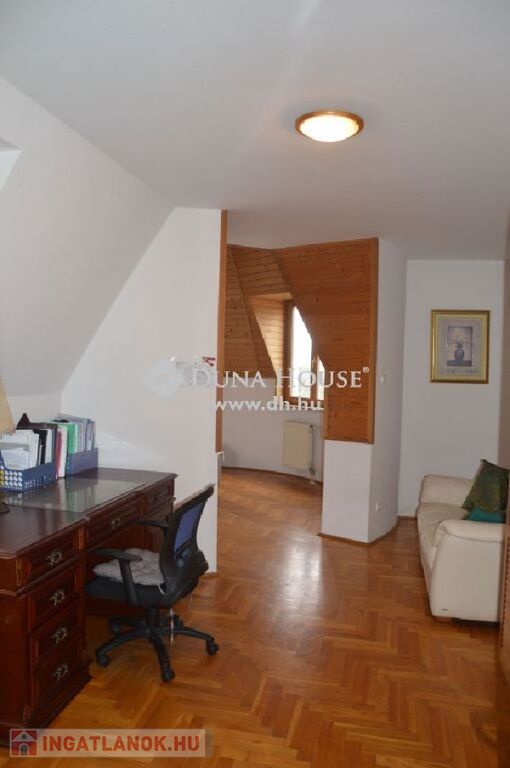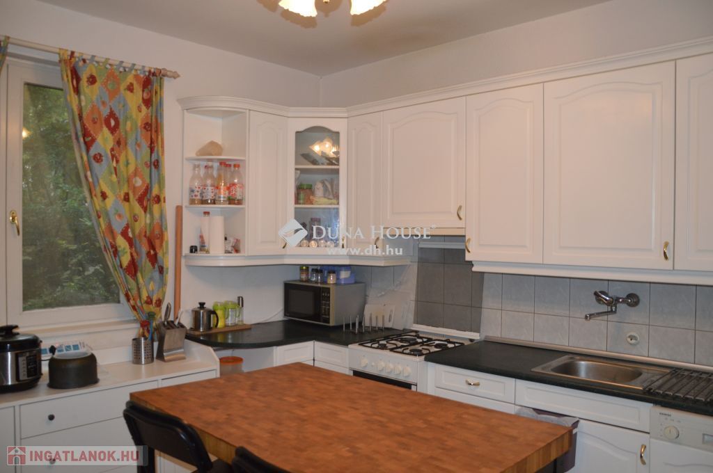 Eladó bútorozott családi ház, kertkapcsolattalEladó Remetekertvárosban egy 800 nm-es önálló telken lévő 3 szintes családi ház, részben bútorozva.Az alagsori szinten elektromos ajtóval nyíló 2 állásos garázs, tárolók, mosókonyha és kazánház található, ahonnan közvetlen lépcső visz fel a lakótérbe.A földszinten egy hatalmas, 55 nm-es nappali étkező, kandallóval, légkondicionálóval, hatalmas ablakfelületekkel és csodálatos panorámával a Széchenyi hegyre. Ezen a szinten került kialakításra a konyha, egy fürdőszoba sarokkáddal és dupla mosdóval, illetve van egy külön vendég WC is.Az emeleten 3 nagyméretű hálószoba légkondicionálóval, csodálatos panorámával és terasszal és egy fürdőszoba is kialakításra került.A ház építészetileg különleges, sok egyedi megoldással, ami különleges hangulatúvá teszi az otthont.A kert parkosított, locsolórendszerrel. A kert egy részén konyhakert lett kialakítva.A házra 3 éve napelemes rendszer került, ami a teljes villanyfogyasztást fedezi egész évben.A gáz havi átalány díja igen kedvező, 27.000 HUF, ami a padlófűtésnek és a benapozottságnak köszönhető.Télen a hangulatról és a kellemes melegről a nappaliban kandalló gondoskodik.Mind a teraszokról, mind a nappaliból csodálatos, egyedülálló panoráma a Széchenyi hegyre.