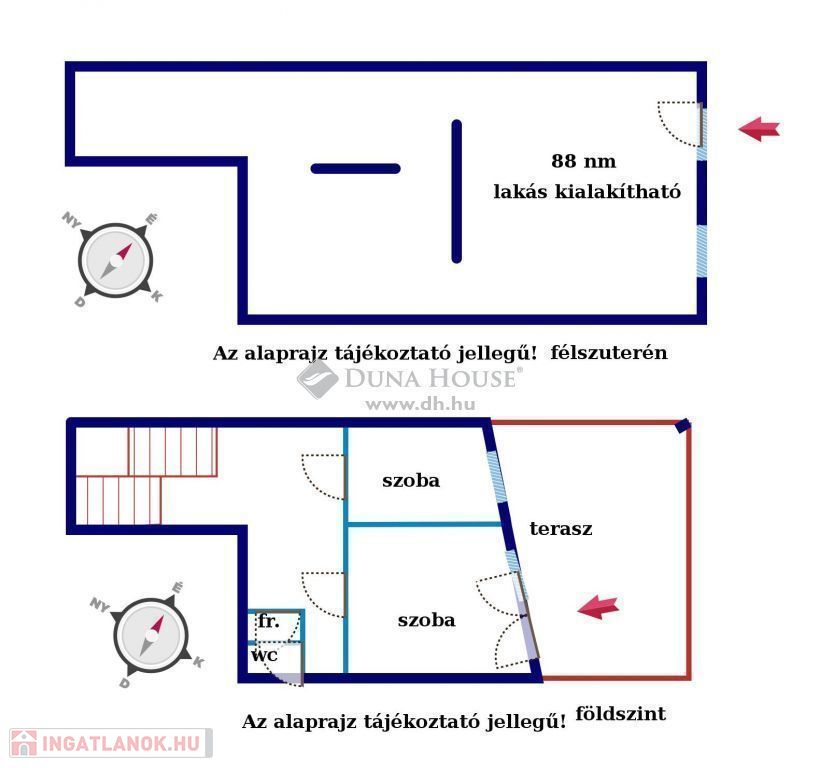 Az ingatlan 1998-ben épült 38 cm-es porotherm téglából, külső szigeteléssel. Minden közművel rendelkezik, fűtése gázkazánokkal történik. A két lakáshoz külön villany- és gázmérőóra van. Alaprajzok mellékelve. A fűtés csőrendszere és a réz villanyvezetékek jó állapotúak.