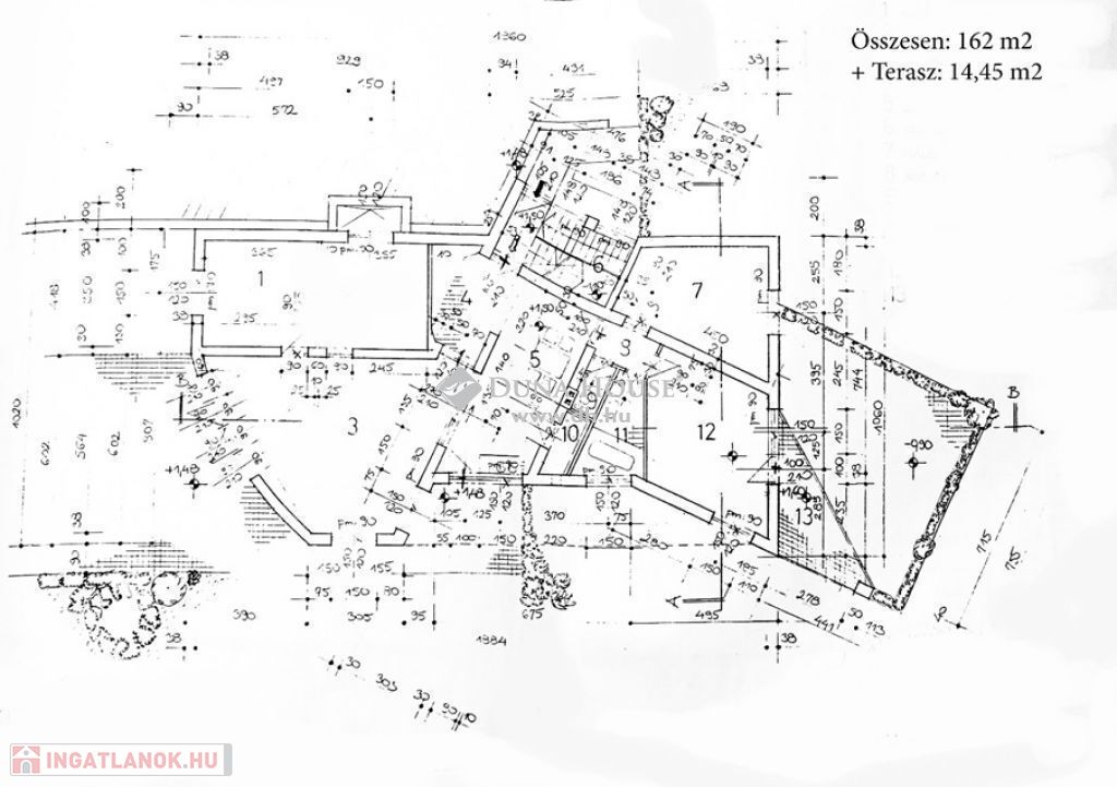 Az ingatlan 1998-ben épült 38 cm-es porotherm téglából, külső szigeteléssel. Minden közművel rendelkezik, fűtése gázkazánokkal történik. A két lakáshoz külön villany- és gázmérőóra van. Alaprajzok mellékelve. A fűtés csőrendszere és a réz villanyvezetékek jó állapotúak.