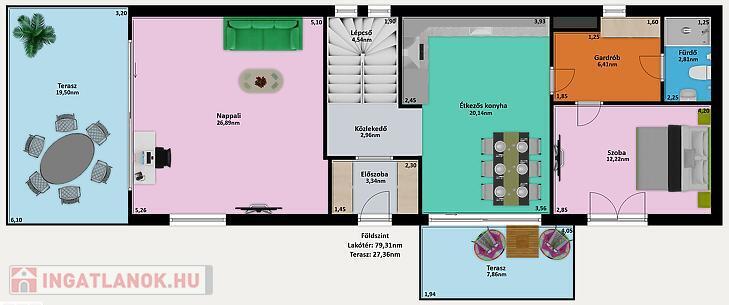 Nappali szint – 79,31 nm + 27,36 nm terasz
