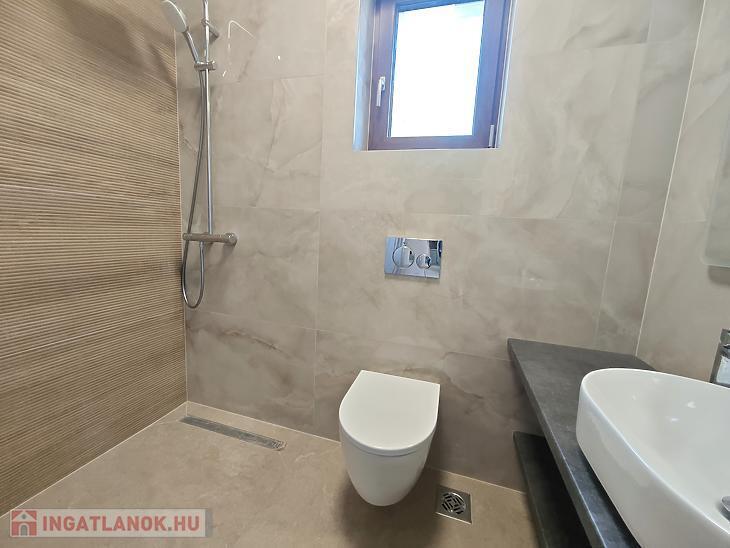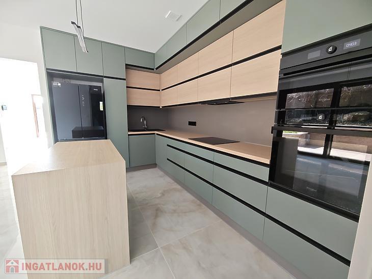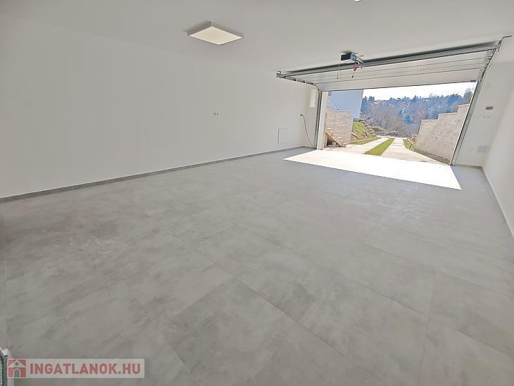 A háromrétegű hőszigetelt nyílászárók, alumínium küszöbökkel és párkányokkal, valamint a motoros, színezett alumínium redőnyök biztosítják az energiahatékonyságot és a kényelmet. A garázsban Hörmann szigetelt, motoros szekcionált garázskapu került beépítésre.
