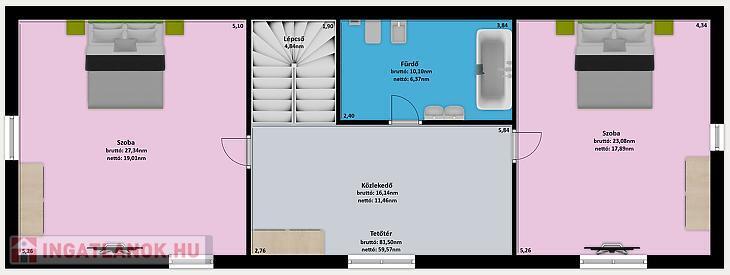 Emelet – bruttó 81,50 nm / nettó 59,57 nm