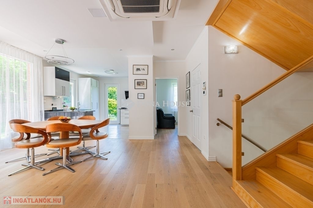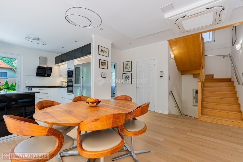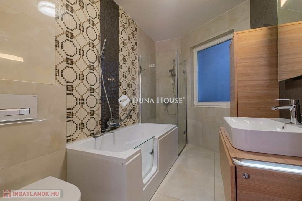 Kivételes lehetőség egy prémium kategóriás otthonra vágyóknak!Eladó ízlésesen felújított, 3 szintes ikerház medencével és hatalmas terasszal!Ez a 241 m²-es, háromszintes ikerház ideális választás akár két generáció együttélésére is tágas terei, külön beosztható szintjei és gondosan megtervezett belső elrendezése révén.Főbb jellemzők:Nappali + 6 hálószoba - 3 fürdőszoba rengeteg tér családnak, munkának vagy vendégeknek3 szint jól elkülöníthető életterek, ideális nagycsaládosoknak vagy két generációnakHatalmas terasz tökéletes helyszín reggeli kávézáshoz vagy esti grillezésekhez barátokkalGyönyörű, parkosított kert zöld oázis a város szélénSaját medence a nyári hónapok kihagyhatatlan kényelmeJakuzzi és szauna otthoni wellness minden napÍzlésesen felújított, minőségi anyagokkal azonnal költözhető állapot Kiváló elhelyezkedés tömegközlekedés pár lépésre, iskolák , óvodák a közelben, mégis nyugodt, kertvárosi környezet.Ez az ingatlan ideális választás azoknak, akik kompromisszumok nélküli, magas színvonalú otthonra vágynak legyen szó akár családi fészekről, akár hosszú távú befektetésről. Ne maradjon le róla! Tekintse meg személyesen, és győződjön meg a kivételes hangulatról és a praktikus elrendezésről!Várom hívását!