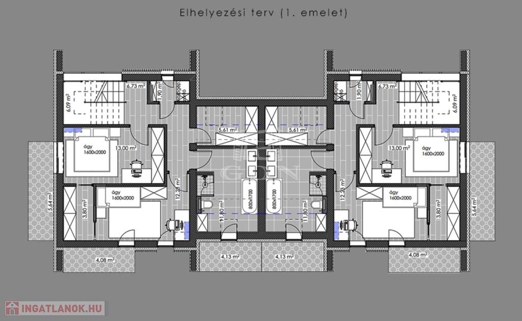 - " B " - lakás nettó alapterülete: 134,5 nm + terasz 43 nm + erkélyek
