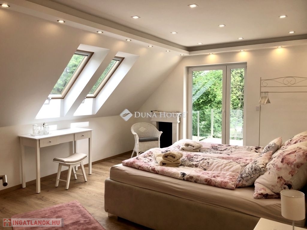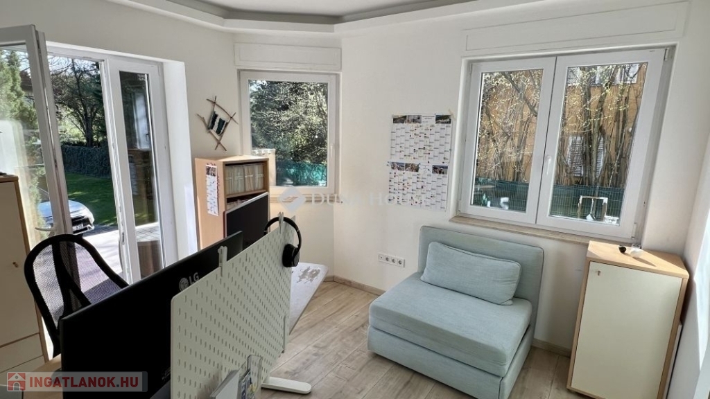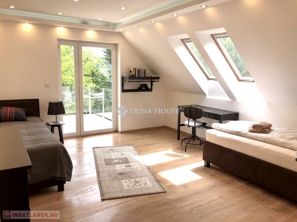 Eladó Budaligeten (Budapest 2A) gyönyörű fás környezetben nagy telken (1083 m2) álló két szintes összesen bruttó 370 m2 -es családi ház.Az ingatlan a Budapesti Gustave Eiffel Francia Általános Altalános Iskola és Gimnázium közvetlen közelében található, mely francia tantervet követ, tanulói elsősorban francia / magyar állampolgárságú diákok, de igen jelentős a más nemzetekhez tartozó diákok száma is. Szintén innen már közel az American International School of Budapest, mely helyileg Nagykovácsiban, 10 perc autózásra, található.A ház 2018-ban egy teljeskörű felújításon esett át, modern, kiválóan hőszigetelő nyílászárókkal és falakkal rendelkezik. Az ingatlan egy teljesen bekerített telken található, elektromos bejárati kapuval, mely privát szférát / intimitást és biztonságot nyújt. A meleget az egész házban modern padlófűtés biztosítja. A közvetlen kertkapcsolattal rendelkező földszinti lakás tágas nappali-étkezőből, jól felszerelt (Nolte) konyhából és beépített szekrényekből, 3 hálószobából, 2 fürdőszobából, háztartási helyiségből és egy nagy fedett teraszból áll.A felső emeleten egy fényárban úszó nagy nappali fogad - étkezővel, tetőablakokkal és dekoratív tetőgerendákkal ellátott magas helyiségekkel, egy jól felszerelt Nolte konyhával, 3 tágas hálószobával, 2 fürdőszobával, 2 nagy erkéllyel és egy fa laminált padlóval burkolt félemelettel rendelkezik , amelyhez már csak egy lépcső vagy létra feljáró szükséges. Minden szoba modern Daikin klímaberendezéssel van ellátva.A házhoz egy nagy, gyönyörűen parkosított kert tartozik öntözőrendszerrel, kerti pavilonnal és egy pincével, ahol két állású garázs található.A ház jelenleg két különálló lakóegységre van osztva, azonban egy kisebb átalakítással könnyedén összenyitható. Az ingatlan jelenlegi állapotában is sokféle hasznosításra alkalmas: ideális kétgenerációs otthonnak, egyik lakás hosszú vagy rövid távú kiadásával pedig rendszeres jövedelemforrás biztosítható, miközben a másikban kényelmesen élhet a tulajdonos. Az egységek összekapcsolásával pedig egy család számára tágas, világos és jól kihasználható élettér alakítható ki.Ne hagyja ki ezt a hihetetlen lehetőséget, és hívjon megtekintésért vagy további információkért.