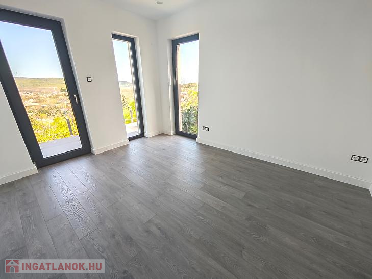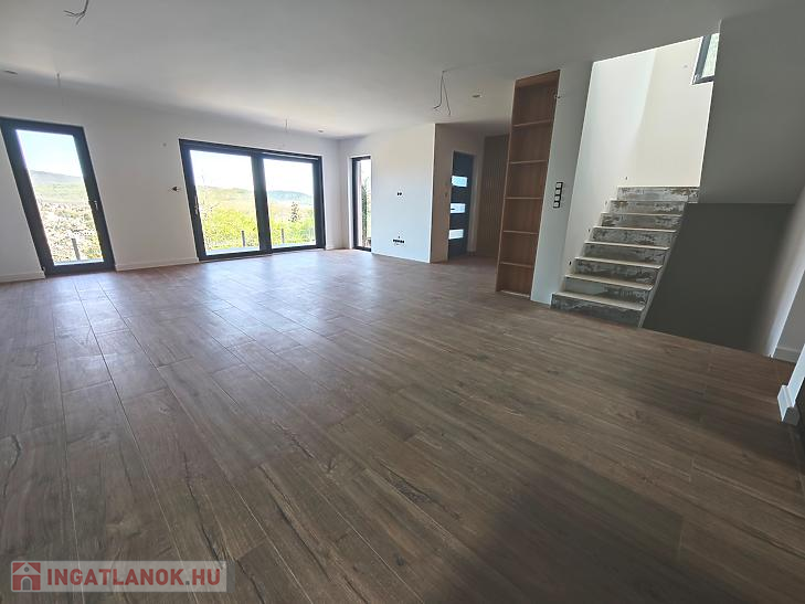 A ház alsó szintje 75nm. Itt kapott helyet az 55nm-es garázs, a háztartási helyiség és a gépészeti helyiség. Innen belső lépcsőn jutunk fel a nappali szintre, ami szintén 75nm. Itt található az 51nm-es nappali, konyha, kamra és wc. Erről a szintről már csodálatos panorámánk van, amit a nagy üvegfelületekkel rendelkező nappaliból vagy akár az innen nyíló 9,6nm-es teraszról is élvezhetünk. A legfelső szinten, ami 52 nm, található a 3 hálószoba, melyből a szülői hálószoba gardróbbal és saját fürdőszobával rendelkezik. Ezen a szinten további egy fürdőszobát alakítottak ki, a másik 2 hálószobához, illetve egy káprázatos panorámával rendelkező 9,6nm- es erkélyt. A hátsó kert felé nyíló 19nm-es teraszra a folyósoról és az egyik hálóból is ki lehet jutni. Erről a teraszról lehet megközelíteni külső lépcsőn keresztül a 60nm-es, 360 fokos körpanorámával rendelkező tetőteraszt, amely megerősített födémszerkezettel rendelkezik, így akár egy jakuzzit is elbír.