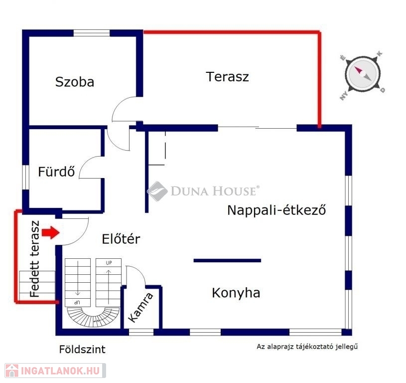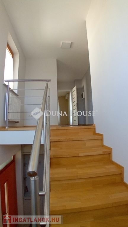 A belső lépcsőn a földszintre érkezünk, mely tágas, étkezős nappaliból és részben szeparált konyhából áll, kamrával. A nappalihoz kapcsolódó nagy terasz és a csodás kert kellemes helyszín a kikapcsolódáshoz. A földszinti háló és fürdőszoba lehetőséget ad akár egy vendég elhelyezésére, akár otthoni munkavégzésre.