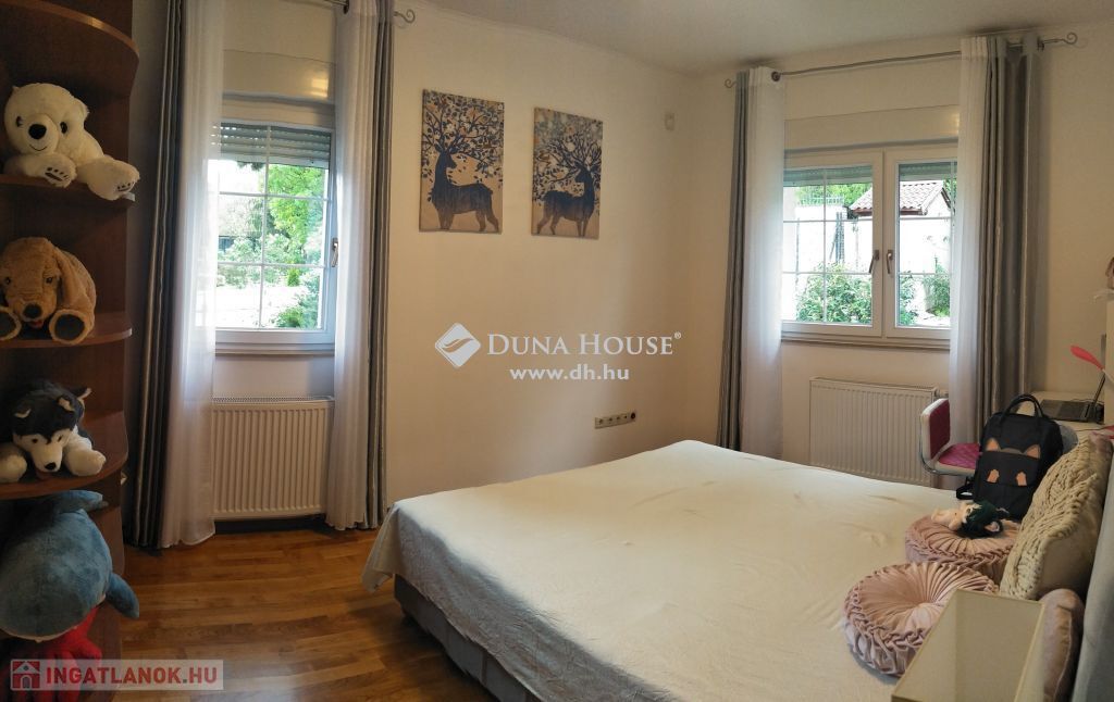 Eladó 2009-ben épült családi ház, gyönyörű panorámával, közel a Francia iskolához! A ház 908 m2-es telken helyezkedik el, jó elosztású, 2 nappali és 5 hálószoba található benne, valamint több tároló, mosókonyha, gardrób, a hálószobák külön nyílnak, így a nyugodt elvonulási is megoldott.Az egyik nappaliban külön konyha is kialakítható, ha több generáció szeretne együtt élni.Tágas amerikai konyhás nappalija rendkívül világos, 3 fürdőszobája egyikében szauna került elhelyezésre.A fűtést modern gázkazán és padlófűtés is biztosítja! A rezsi kedvező!A terek jól kihasználtak, a ház kényelmes nagyobb család számára is, családi rendezvények helyszíne lehet a 28m2-es terasz! Innen jutunk le a gondozott kertbe, mely zegzugos és egy halastó is található benne. A panoráma egyszerűen gyönyörű!A híres Náncsi néni vendéglő és számos nemzetközi iskola a közelben található, autóval 5 percre van a Francia Nemzetközi Iskolától, 8 percre az Amerikai Nemzetközi Iskolától, az Amerikai Egyházi Iskolától és a Spanyol Nemzetközi Iskolától.Néhány perc alatt a Hűvösvölgyi végállomáshoz juthatunk.A ház közelében sok bevásárló szupermarket található, TESCO, LIDL, SPAR, nagyon kényelmes a vásárlás.
