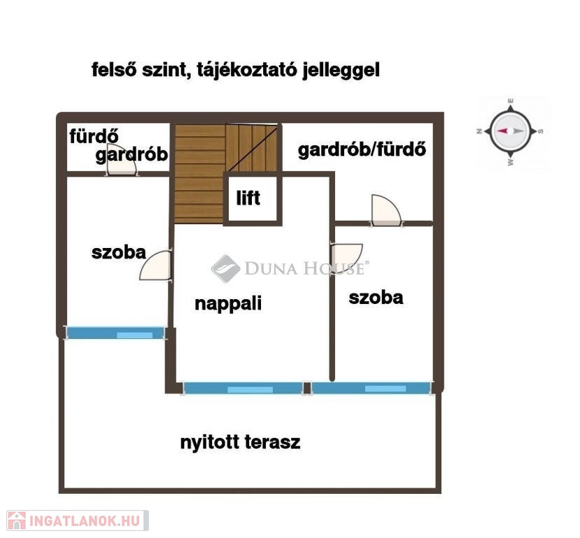 Nettó 470 m² + 300 m² terasz és tetőkert.