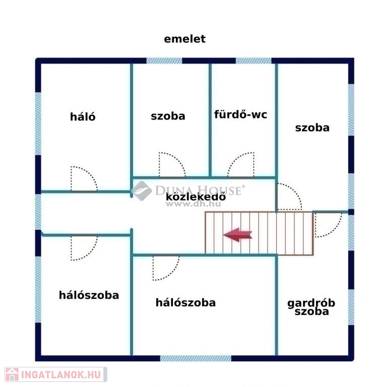 Az emeleten, ami br. 110 m2, 5 hálószoba, gardrób szoba és egy fürdő lett kialakítva.