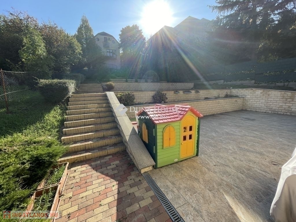 A kertrész teraszos megoldású, a telek 976 m2.