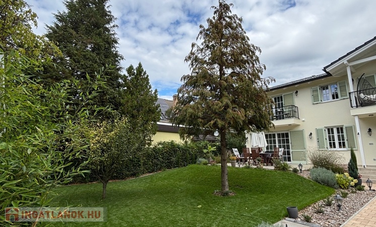 Kivételes lehetőség a II. kerület egyik legkeresettebb részén! Eladó egy frissen elkészült, amerikai stílusú luxusvilla, amely modern eleganciájával és kimagasló műszaki tartalmával valódi ritkaság a piacon. Főbb jellemzők: Nettó alapterület: 205 m² Terasz: 50 m² + minden szobához 4–6 m² erkély Telek mérete: 800 m², parkosított kert Elrendezés: kétszintes, átgondolt alaprajz, tágas terek ✨ Belső kialakítás: A földszinten elegáns előtér, világos, amerikai stílusú konyha–étkező–nappali egy légtérben, mely a családi élet központja. Ezen a szinten található egy vendégszoba saját fürdővel és WC-vel, kamra, tároló és gépészeti helyiség. Az emeletre vezető impozáns lépcső egy három hálószobás részhez érkezik, mindegyik saját fürdőszobával és erkéllyel. Két hálószobához külön gardrób, valamint mosókonyha és közlekedő is tartozik. ⚙️ Felszereltség és technológia: Daikin hőszivattyú (H-tarifa) Távvezérelhető padló- és mennyezetfűtés/-hűtés, helyiségenként szabályozható Riasztó, IP kamerarendszer Központi porszívó, vízlágyító Robotfűnyíró, automata öntözőrendszer Külső tér és extrák: A gondosan parkosított kert nyugalmat és intimitást biztosít. Kétállásos fedett gépkocsibeálló elektromos kapuval és autótöltő előkészítéssel Kültéri műhely / motortároló Dél–nyugati fekvésű, tágas terasz – tökéletes pihenésre és vendégfogadásra Ez az ingatlan a modern luxus, a kényelem és a zöldövezeti élet tökéletes harmóniáját kínálja. Tökéletes választás azoknak, akik prémium minőségű, új építésű otthont keresnek Budapest egyik legnyugodtabb, mégis központi részén.
