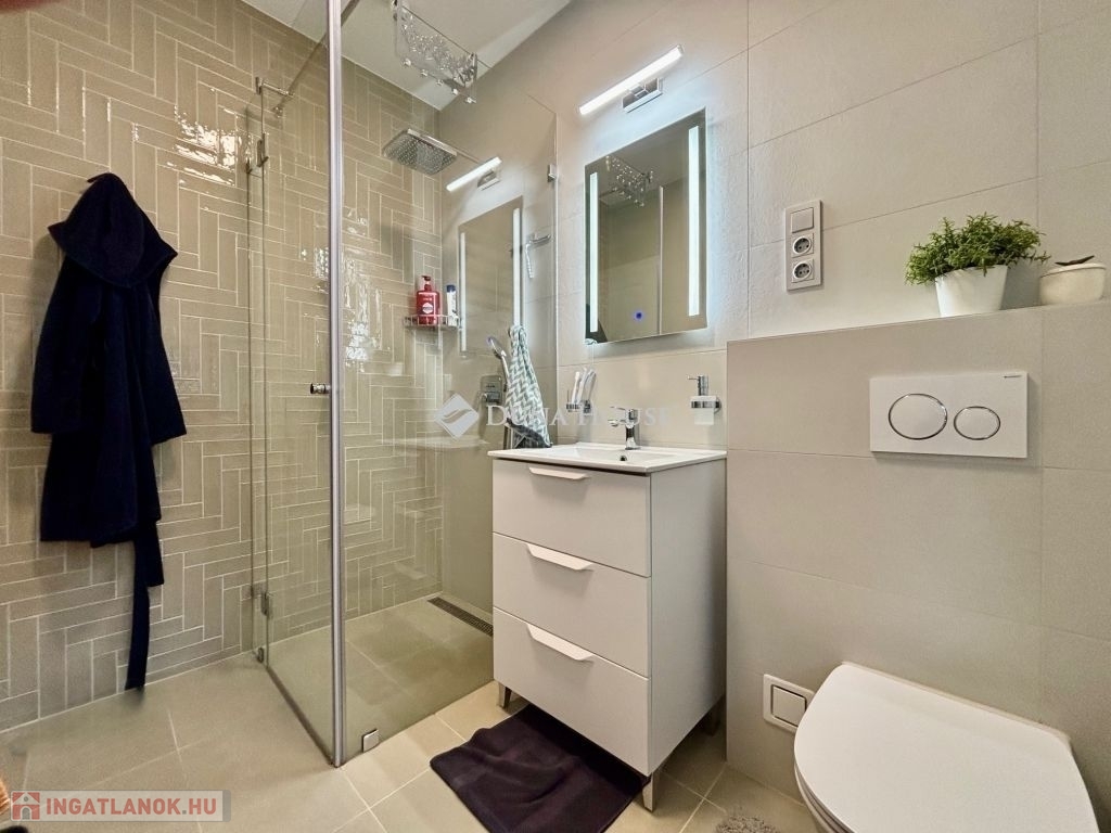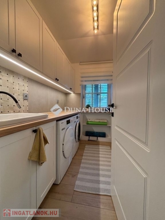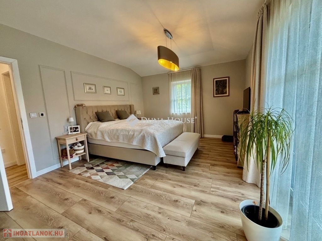 Eladó egy frissen elkészült luxusvilla Budapest II. kerületének Széphalom városrészében. Ritka és különleges, amerikai stílusú építészeti gyöngyszem egy csendes és zöldövezeti utcában. A ház nettó alapterülete 205 nm amihez tartozik egy 50nm-es terasz és minden szobához 4-6 nm erkély. Az ingatlan két lakószintes, a telek 800 m²-es parkosított kertet kínál. A földszinten egy elegáns előtér fogad, ebből belépve található egy tágas, amerikai stílusú konyha, étkező és nappali egy légtérben, amely a családi élet központja.Ezen a szinten került kialakításra egy vendégszoba saját fürdőszobával és WC-vel, valamint egy tároló, egy kamra és a gépészeti helyiség. Egy impozáns lépcsőn felérve az emeleten három erkélyes hálószoba található, mindegyikhez saját fürdőszoba és WC tartozik, két hálószobához pedig külön gardróbszoba is kapcsolódik. Ezek mellett egy mosókonyha/háztartási helyiség és egy közlekedő is helyet kapott itt. Az ingatlan különlegességét tovább fokozzák az extra felszereltségek, mint például riasztó, központi porszívó, IP kamerarendszer, robot fűnyíró, Daikin hőszivattyú (H-tarifa), távvezérelhető padló és mennyezet fűtés/ - és hűtés, ami helyiségenként szabályozható, valamint vízlágyító. A csodálatos kertről sem feledkezhetünk meg, amely gondosan parkosított és öntözőrendszerrel van ellátva. A kertben található egy fedett gépkocsibeálló 2 autó részére, elektromos kapuval és autótöltő lehetőséggel, illetve egy kültéri műhely/motortároló továbbá egy tágas DNY-i terasz, ami ideális a pihenésre és vendégfogadásra. Ez a ház tökéletes választás azon családok számára, akik az exkluzívitásra és nyugalomra vágynak Budapest egyik legelőkelőbb kerületében, mindezt elegáns környezetben, magas minőségben kivitelezett otthonban szeretnék megtenni.Az ingatlan Széphalom könnyen megközelíthető és nyugodt környezete mellett kiváló infrastruktúrával rendelkezik. A közelben találhatóak neves oktatási intézmények, nemzetközi iskolák, bevásárlóközpont, éttermek, uszoda és sportközpont és nem utolsó sorban a környék tömegközlekedése is megoldott. Ha egy olyan otthont keres, ahová csak a bőröndjét kell hoznia, itt erre is lehetőség van: az ingatlan akár teljes bútorzata is az Öné lehet. Ha felkeltette érdeklődését, keressen bizalommal!