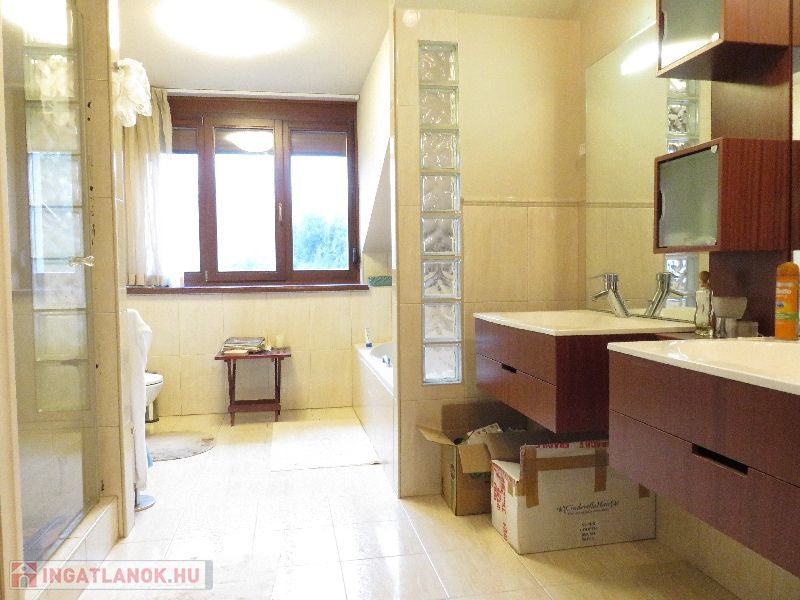 II/A Máriaremete csendes utcájában 2001-ben a legkorszerűbb anyagokból épült 600 m2 + 100 m2 teraszos, 2 nappali + 6 szobás, kubai stílusban berendezett, klimatizált, felújítandó családi ház duplagarázzsal, egyedi úszómedencével, jacuzzival, szaunával, 2 légkamrás fa nyílászárókkal, trópusi fa burkolatokkal eladó.