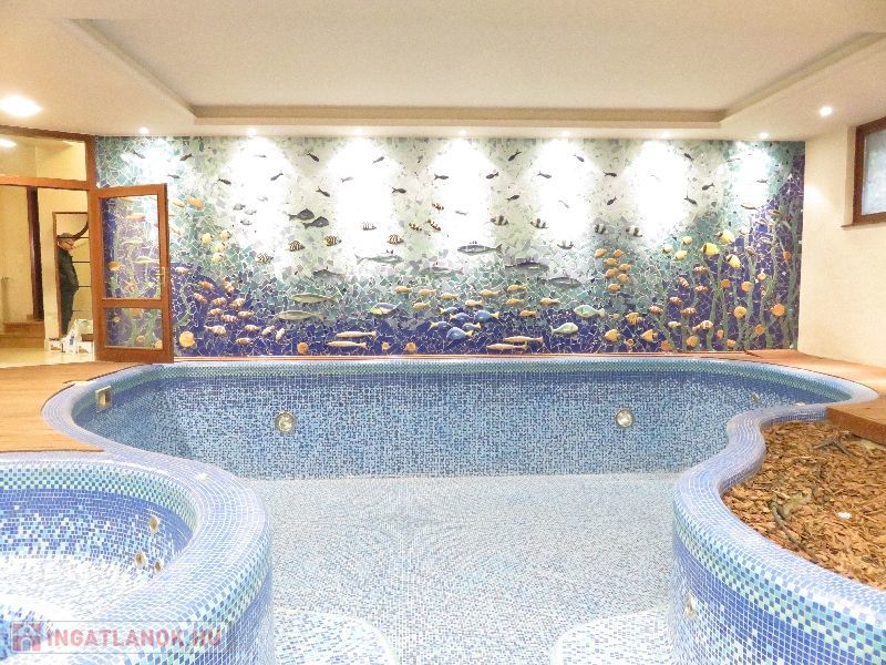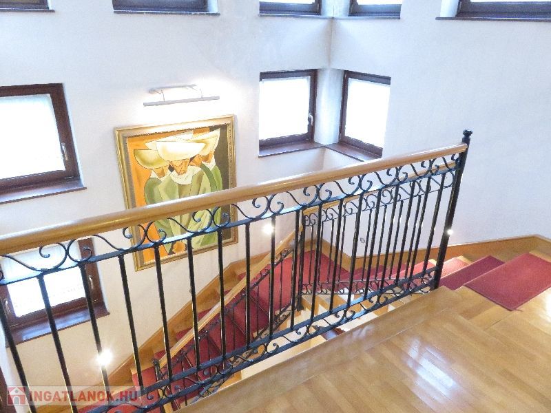 * Félszuterén: duplagarázs, wellness (medence, jacuzzi, szauna, zuhanyzó), tornaterem, mosdó, mosókonyha, kazánház