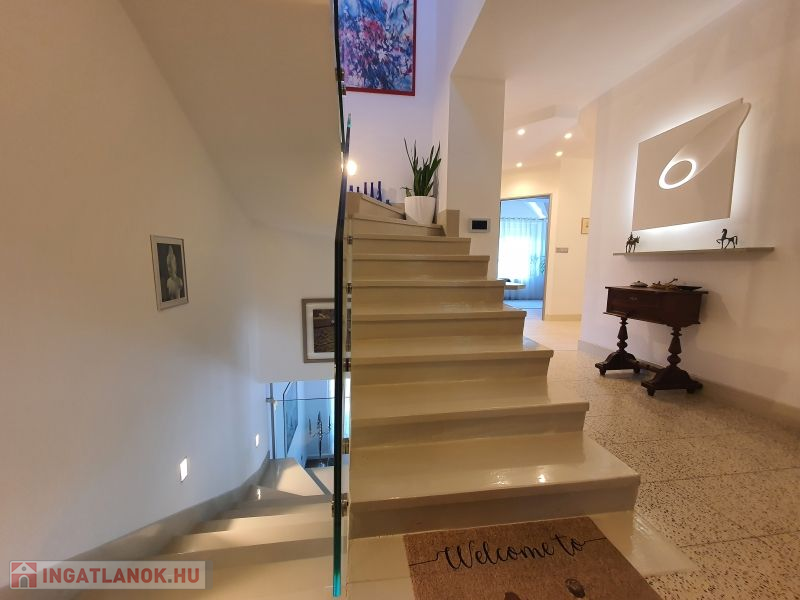 - 300 m2 beépített összterület, 116 m2-nyi terasz, 5 hálószoba, 3 fürdő,