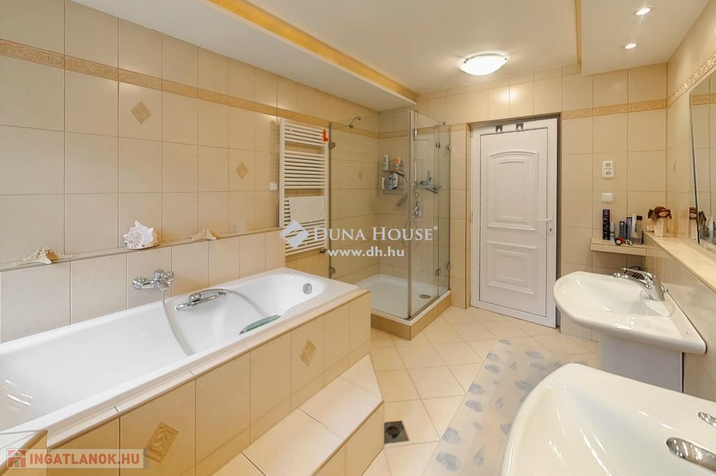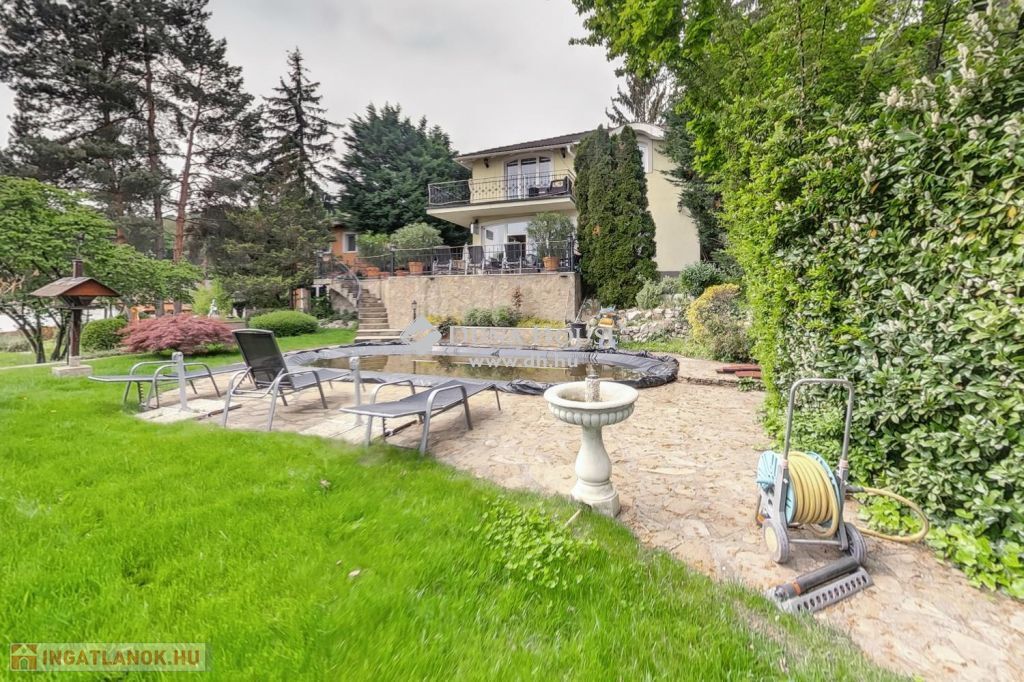 Tekintse meg 3D webséta linkünket, hogy lássa ajánlatunkat!Panorámás telken, kis forgalmú utcában, egyedi adottságokkal rendelkező ingatlan keresi új tulajdonosát.3422 négyzetméteres telken eladó, 2 családi ház egy csodás birtokon, mely panorámás a Kálvária-hegyre. A két családi ház szeparálható telekrészekkel, így remek megoldás nagyobb családoknak, akik szeretnének egymás közelében maradni.Ezen felül a birtok részét képezi egy szélső telek, önálló helyrajzi számmal, mely akár értékesíthető is, remek beépítési lehetőségekkel (3-4 lakásos sorház építhető rá).A két családi ház 10 év különbséggel épültek. A főépület 1999-ben épült, gondos odafigyeléssel, 38-as porotherm téglából, hőszigetelő, terranova vakolattal, monolit födémszerkezettel. A válaszfalak 10 cm-es, hangszigetelt falak.Az épület 3 szinten 360 négyzetméter, rendelkezik 200 négyzetméter terasszal, s egy 40 négyzetméteres teremgarázs is rendelkezésünkre áll. Ebben a házban 5 külön nyíló háló található, melyből az egyik luxus lakosztály, külön fürdővel, toalettel , s gardróbbal, s erkéllyel, panorámás kilátással.A terasz előtt egy medence található, így a meleg hőségben kedvünkre csobbanhatunk benne.Az alagsorban található a kazán, s a melegvíz solar rendszer, a klubhelyiség, a szerszámos tároló közel 20 négyzetméteren, a borospince, s a 40 négyzetméteres tároló is. A házban a földszinten padlófűtés, az emeleten és az alagsorban radiátorok biztosítják a meleget.A konyhában – mind két épületben- megtalálható a 3 fázis, így az akkoriban legmodernebb gépek kerültek beszerelésre. A vendégház, mely szintén tégla épület, mely 2010-ben 5 cm dryvit szigeteléssel épült, monolit födémmel, leszámítva a tetőtérnél, meghagyva az opciót a felfele bővülésre. Ez az épület 160 négyzetméteres, 2 szinten, 3 külön nyíló hálószobával, s egy 80 négyzetméteres terasszal. Ehhez a házhoz 3 felszíni beálló ad lehetőséget a parkolásra.Mind két ingatlanon cseréptető van.Tehát 3 telek, 2 családi ház. Jelenleg nyitottak a telkek egymásra, ettől olyan, mint egy birtok, de lehet szeparálni is.A telken található 2 db fúrt kút 30 méter mélyre ásva. 800 méteres locsoló automatarendszer kialakítva, s van még egy 8 négyzetméteres esővíz tárolónk a föld alatt.Külön-külön nem értékesítjük, meghagyva a lehetőséget azon Vevőjelölteknek, akik környezetükre igényesek, s fontos nekik kik a szomszédok.A környék nagyon csendes, csak a madarak hangja hallatszik, mely csodálatos érzéssel tölti emeli az ott élők hangulatát. Igazán kellemes környezet, sok szép növénnyel, fákkal, bokrokkal.Az utca aszfaltozott, kissé meredek. A szomszédság rendezett, jó lakókörnyezet. Tömegközlekedés 200 méterre megtalálható.Természetvédelmi terület 100 méterre van.Befektetésnek is kiváló, hisz a szélső telekből pénz csinálható rövid időn belül. Ha külön áraznánk be az ingatlanokat, nem férnénk bele ebbe az árba, melyet ajánlunk most Önnek.Keressen bizalommal! Megtekintési időpontot előre kell egyeztetni.