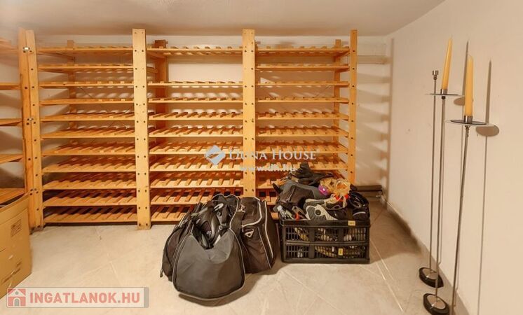Az alagsorban található a kazán, s a melegvíz solar rendszer, a klubhelyiség, a szerszámos tároló közel 20 négyzetméteren, a borospince, s a 40 négyzetméteres tároló is.