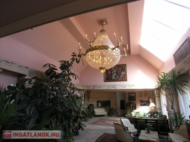 * földszint: előszoba, nagy dolgozó szoba, konyha, ebédlő, nappali, terasz, 2 szoba, kazánház-mosókonyha, 2 WC, uszoda, fitneszterem szaunával, négyállású garázs, kamra, csónakház.