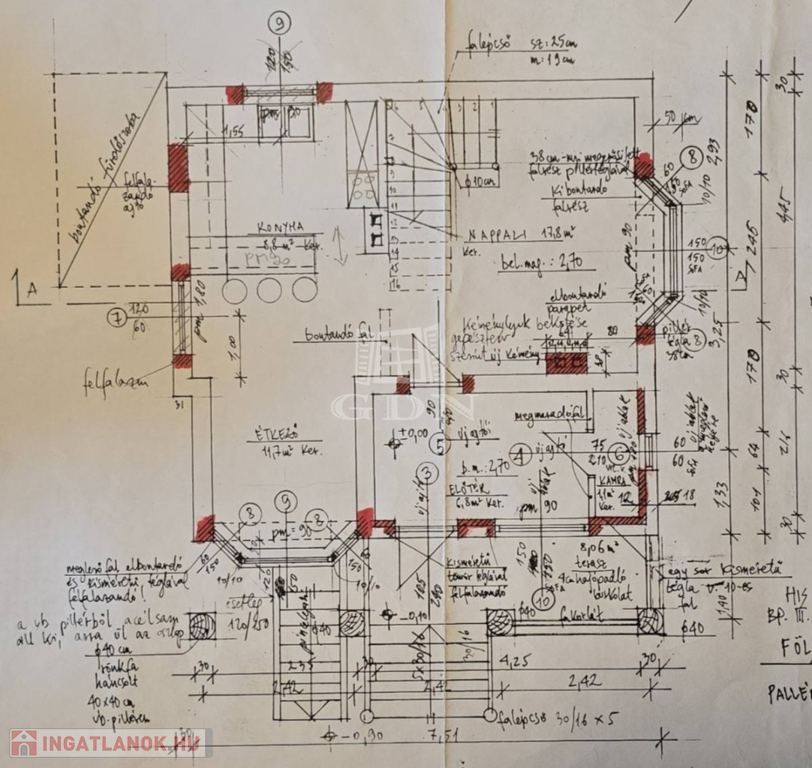 Az alsó szinten amerikai konyhás nappali, étkezővel, a felső szinten 3 napfényes szoba, fürdőszoba épült.