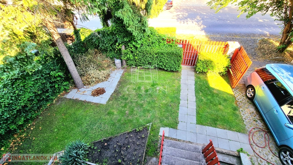 Az udvaron, elektromos kapun keresztül 1 kocsibeálló + 1 gépkocsi számára garázs áll rendelkezésre.