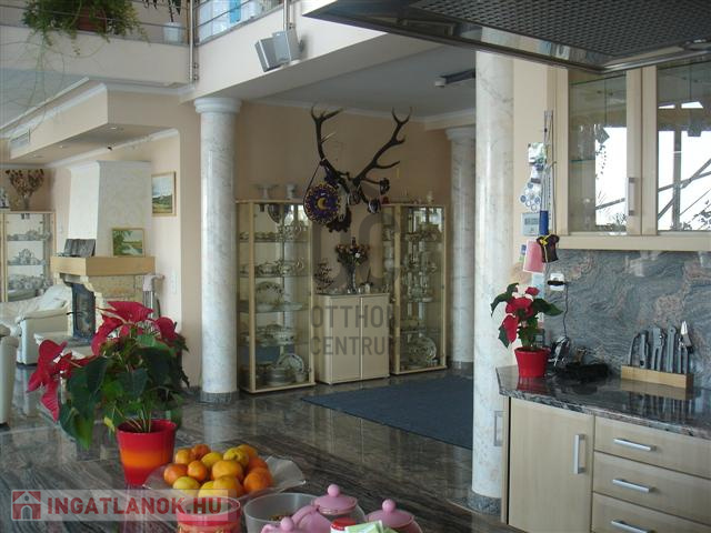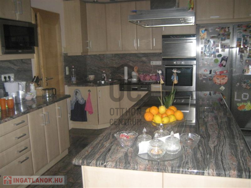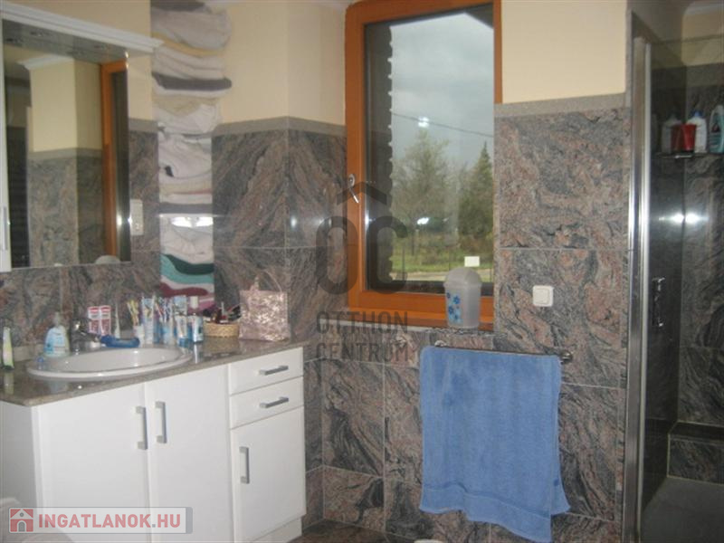 A ház hangulatához és eleganciájához jól illeszkedik az uralkodó gránit-burkolat, a hálószobákban fa-parketta.