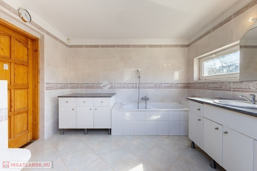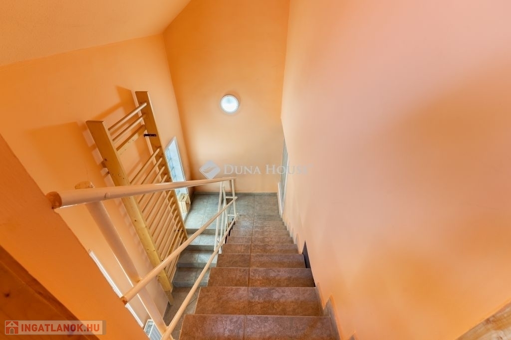 A ház 2000-ben épült, teljes közművel ellátott. A földszinten nappali, konyha, hálószoba, valamint egy kisebb, zuhanyzós fürdőszoba kapott helyet, WC-vel. A tetőtérben további két szoba és egy tágas, káddal felszerelt fürdőszoba található. Az emelethez erkély, a földszinthez pedig terasz kapcsolódik.