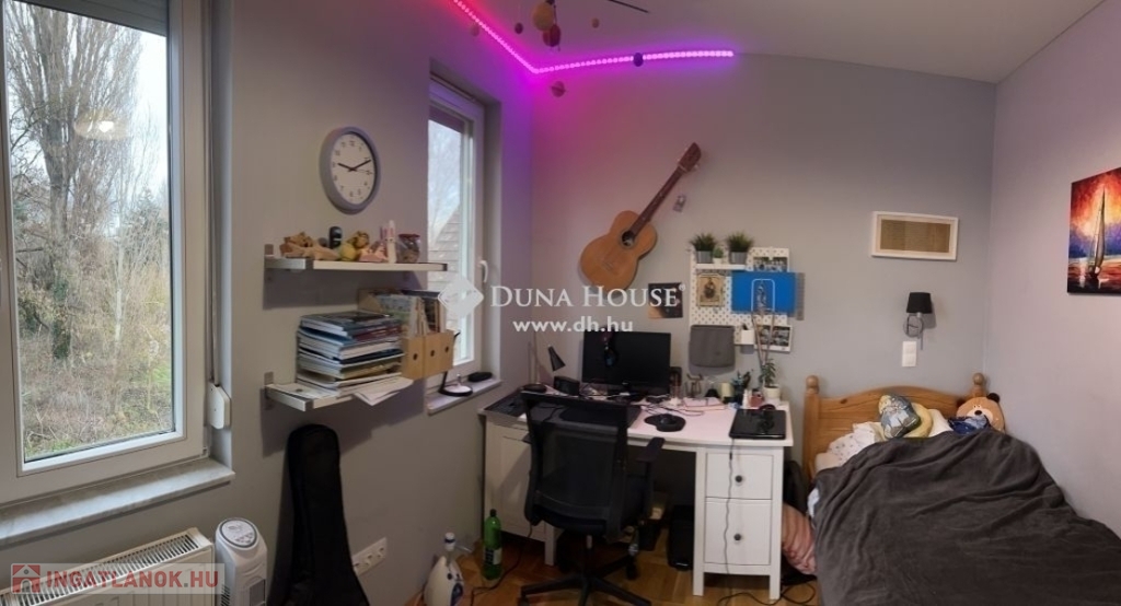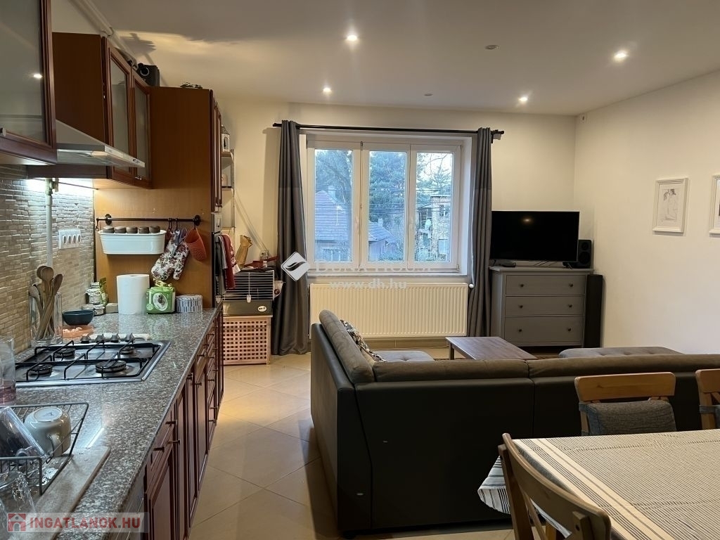 Csillaghegy kedvelt részén eladó házrész, ami egy kitűnő állapotú és elrendezésű, 100 m2-en amerikai konyha + 3 szoba, mellékhelyiségek + nagy terasz elrendezésű, napfényes, emeleti lakásból, kizárólagos használatú, tágas kertrészből, a földszinten önálló bejáratú minigarzonból, valamint saját pincerészből áll!