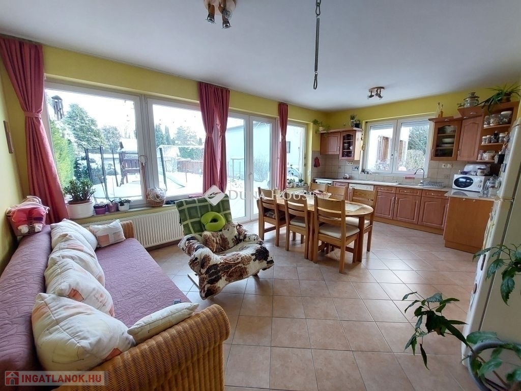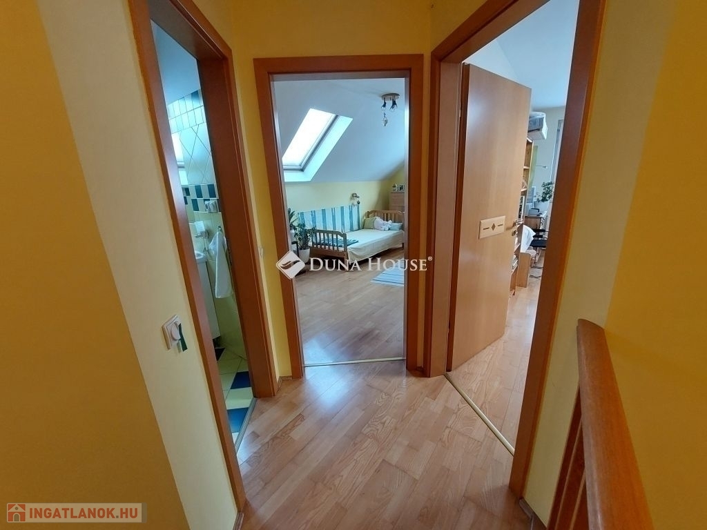 A 2004-ben épült, DUPLAKOMFORTOS, KÉTSZINTES, összesen 110 nm-es házrész földszintjén TÁGAS, AMERIKAI KONYHÁS nappali kapcsolódik egy 21 nm-es NYITOTT teraszhoz. Ezen a szinten található még egy VILÁGOS, DÉLI FEKVÉSŰ, 14 nm-es vendégszoba, egy rejtettzuhanyzós fürdőszoba és egy PRAKTIKUS kamra. Az emeleten két TÁGAS, VILÁGOS hálószoba és egy MEGNYERŐEN SZÉP fürdőszoba kapott helyet.