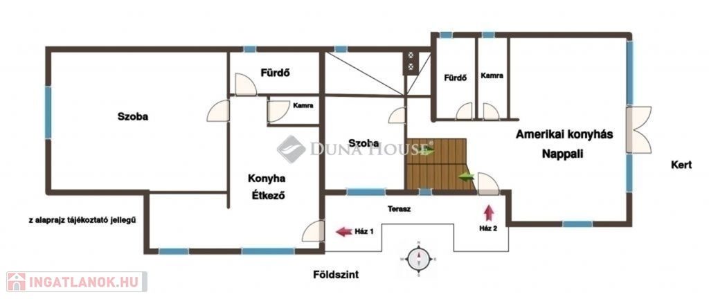 Az ingatlan két, elkülönülő, külön bejáratú lakrészből áll.