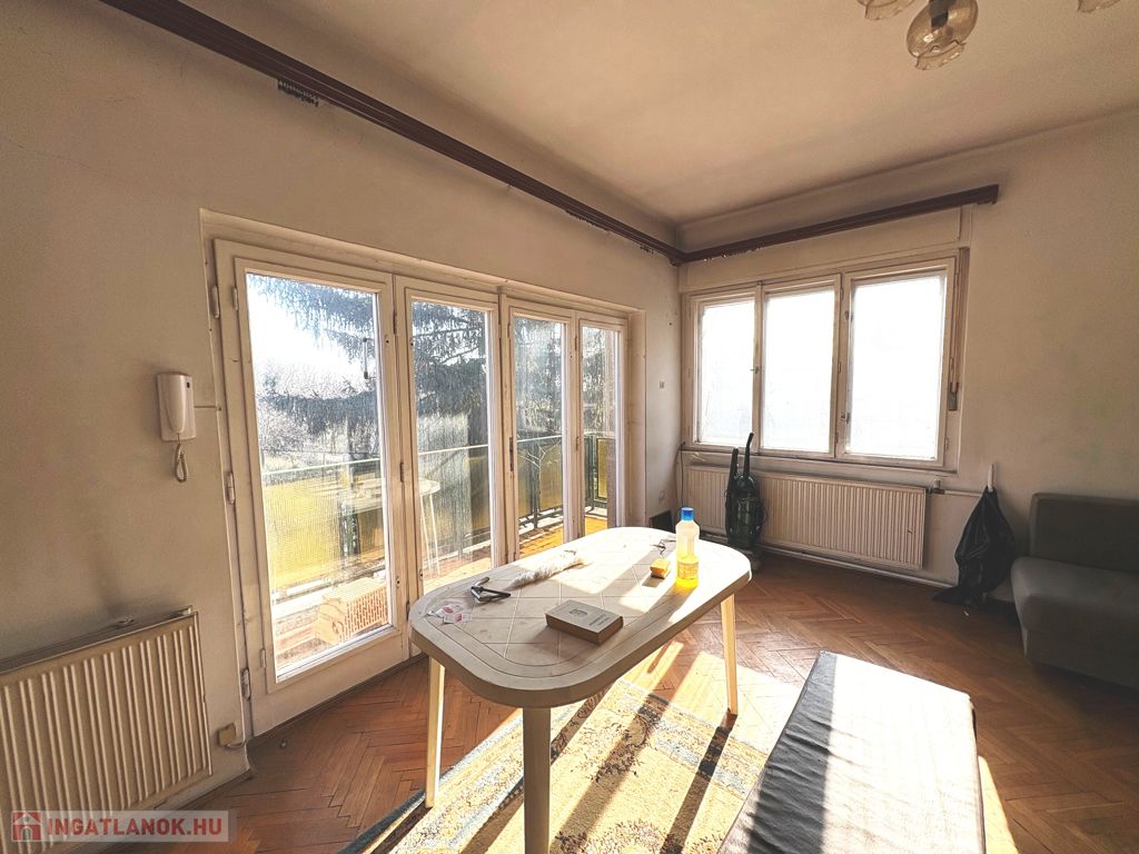 A GOBUDA Bevásárló központtól sétatávolságra elhelyezkedő ingatlan enyhén lejtős telken épített, körbejárható, kétszintes családi ház 100 nm-es felső szintjén 4 szobás összkomfortos lakás található, közvetlen kertkapcsolattal, panorámás terasszal, az alsó szinten garázs, mellette külön bejárattal kialakítható két szobás lakás, vagy igény esetén iroda, műhely, magánrendelő. Az összközműves, statikailag kiváló állapotban lévő, téglaépítésű családi ház szintenként bővíthető, a tetőtér beépíthető, vagy a meglévő épület elbontása után akár öt lakásos társasház, vagy két különálló épület is kivitelezhető. A telek övezeti besorolása: LKe-2/Sz-N3, beépíthetősége 15%.
