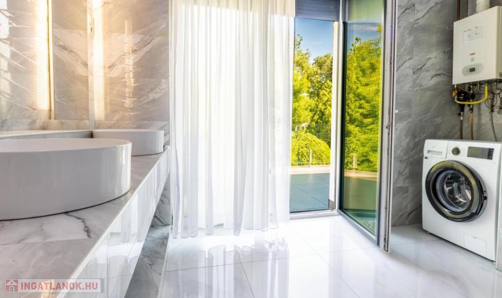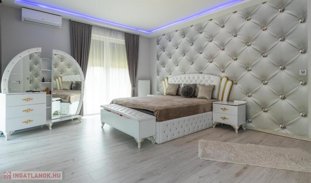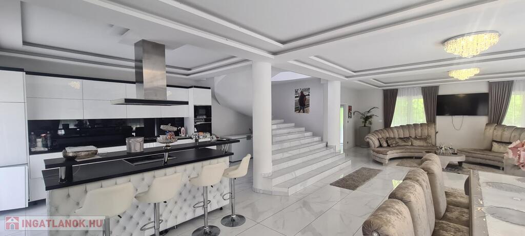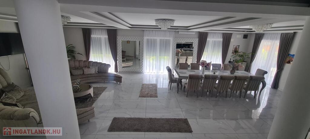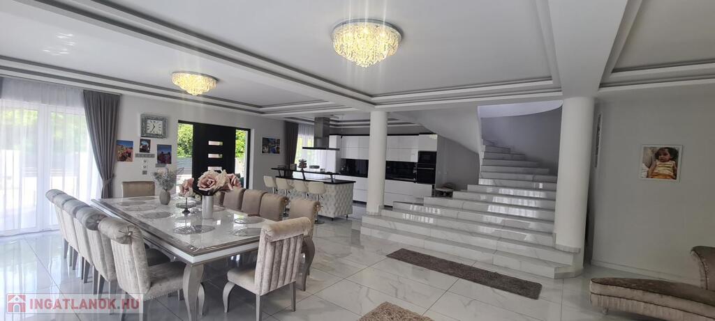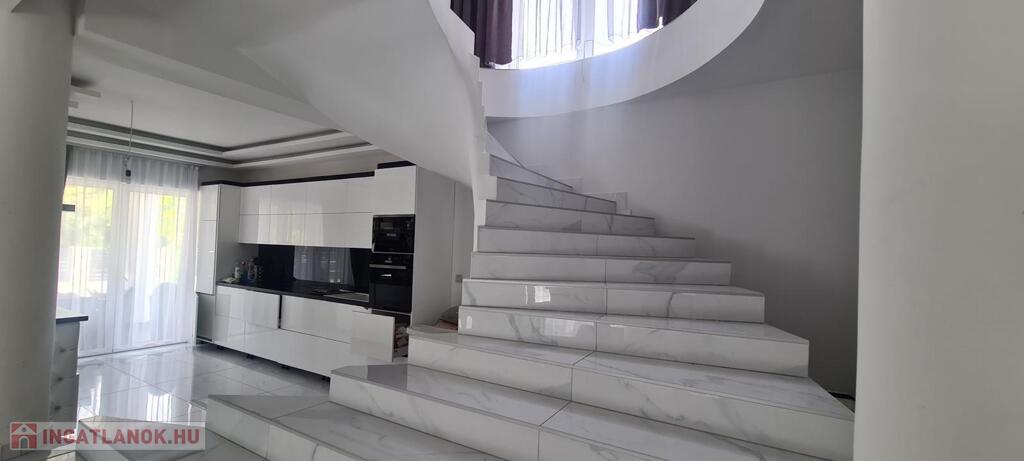 Római fürdő egyik kedvelt utcájában kínálok eladásra egy igényes kivitelezésű gyönyörű családi házat mely egy gondozott 823m2-es sík telken kapott helyet. Ház magas minőségű anyagokból épült kellően átgondolt életterek jellemzik a luxus és az elegancia találkozik. 2022-ben épült minden szoba klimatizált s elektromos redőnnyel felszereltek. Az emeletre gyönyörű Carrerai márvánnyal burkolt lépcső vezet ami amellett hogy könnyen kezelhető igazán elegáns megjelenést sugároz. Gyönyörű kert parkosított, füvesített s öntözőrendszerrel ellátott