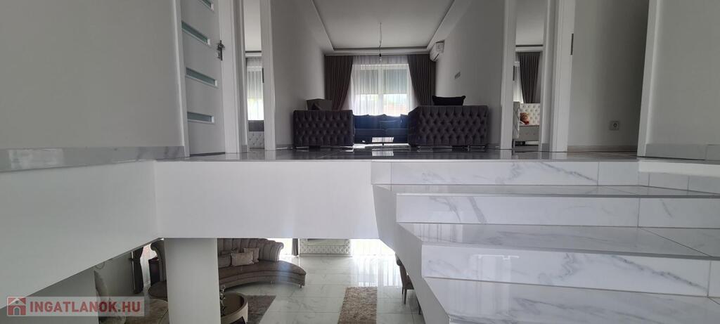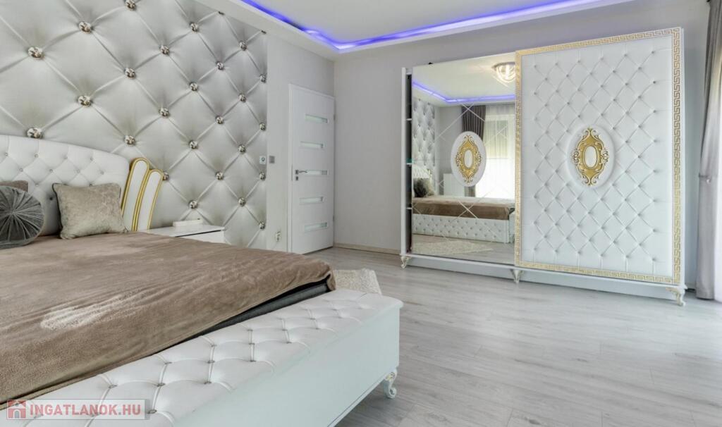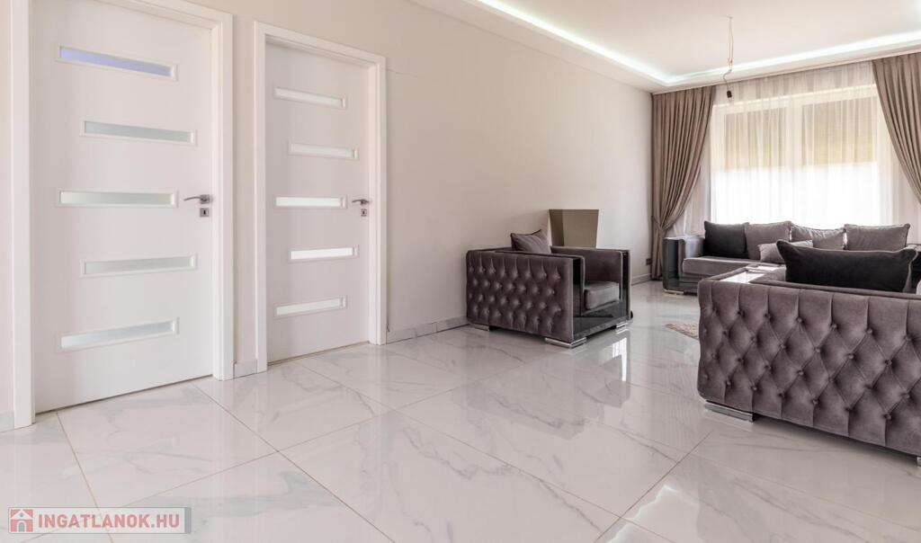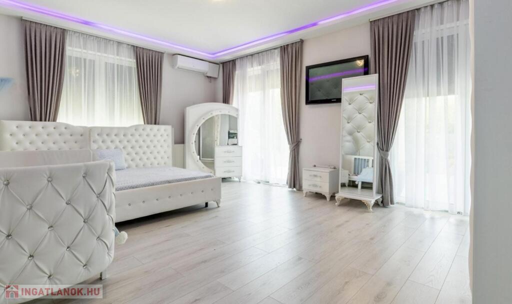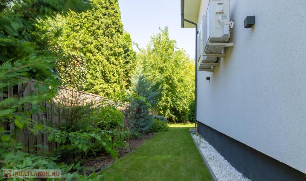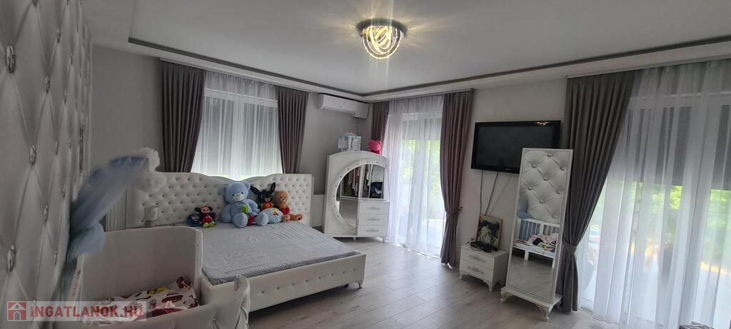 Római fürdő egyik kedvelt utcájában kínálok eladásra egy igényes kivitelezésű gyönyörű családi házat mely egy gondozott 823m2-es sík telken kapott helyet. Ház magas minőségű anyagokból épült kellően átgondolt életterek jellemzik a luxus és az elegancia találkozik. 2022-ben épült minden szoba klimatizált s elektromos redőnnyel felszereltek. Az emeletre gyönyörű Carrerai márvánnyal burkolt lépcső vezet ami amellett hogy könnyen kezelhető igazán elegáns megjelenést sugároz. Gyönyörű kert parkosított, füvesített s öntözőrendszerrel ellátott