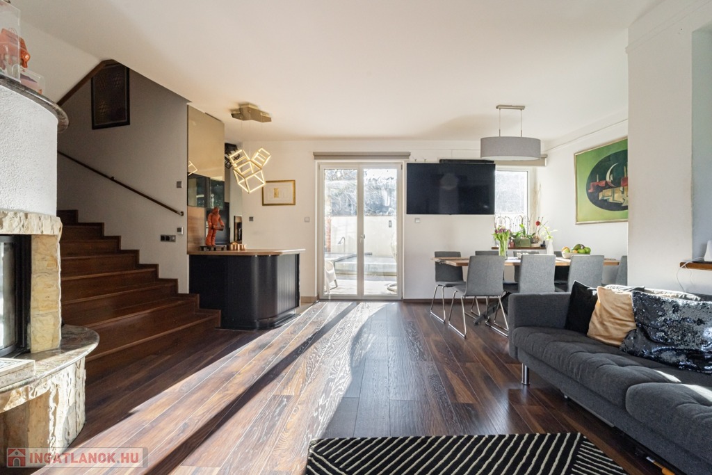 A Testvérhegy egyik legkedveltebb, csendes és elegáns, családi házas övezetében kínáljuk megvételre ezt a minden igényt kielégítő, medencés ikerházat, amely valódi oázis a városon belül – a nyugalom és a kényelem tökéletes harmóniájával.