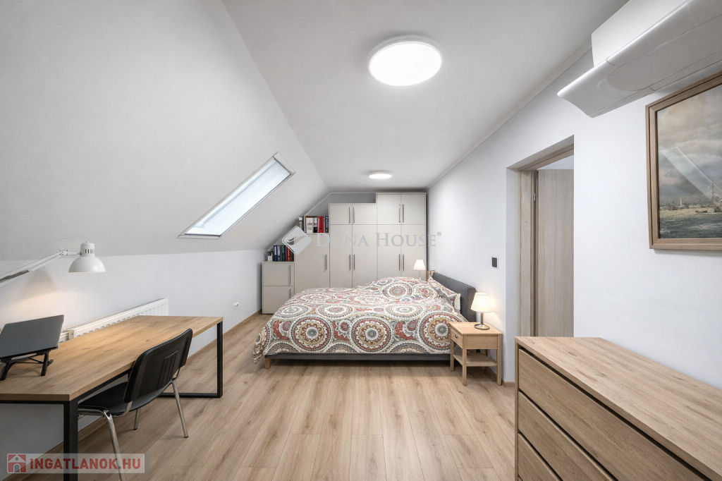 Kivételes adottságokkal rendelkező, háromszintes, folyamatosan karbantartott családi ház egyik ikerházfele eladó Óbudán, a Bécsi út nyugodt, zöldövezeti szakaszán.