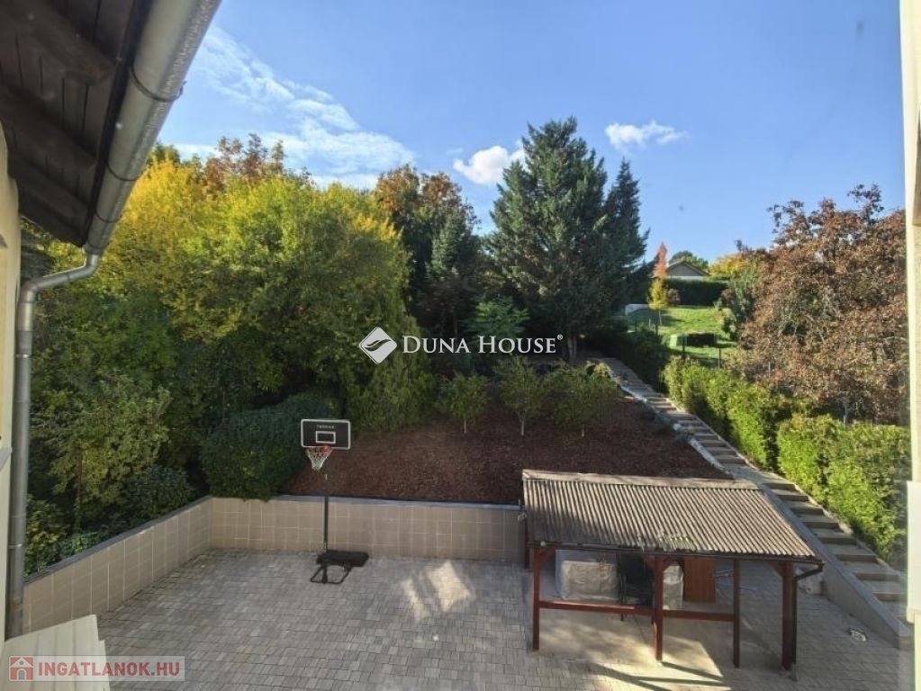 A kb. 1000 m²-es, parkosított kert intim, jól használható, öntözőrendszerrel ellátott. A panoráma és a zöld környezet különleges hangulatot ad az ingatlannak, miközben a város könnyen elérhető. A teraszon kialakított szaletli ideális családi és baráti összejövetelekhez.