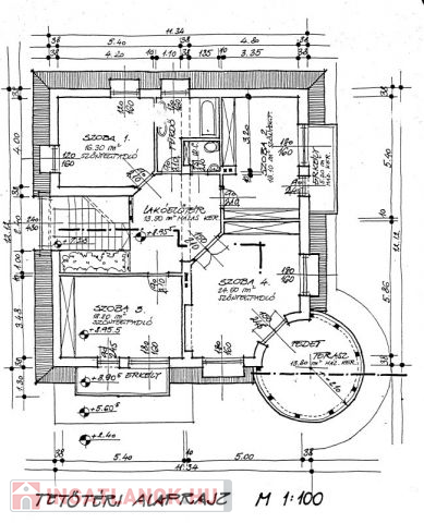 * tetőtér: előtér, 4 szoba ( 24, 19, 16, 18 nm), fürdőszoba, WC, 2 erkély, fedett körterasz