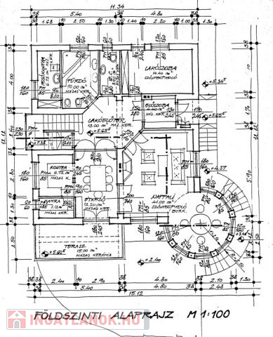 * kertszint: alsó bejárat, dolgozószoba, hobbyszoba, kis konyha, fürdőszoba, kazánház, tároló, WC,