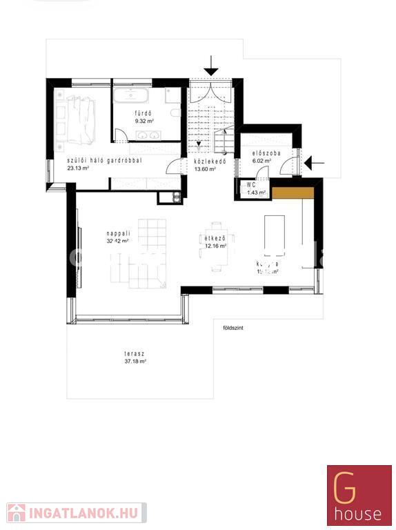 A földszinten található a szülői hálószoba saját, kádas fürdőszobával, amely privát lakrészként biztosít kényelmet és nyugalmat.
